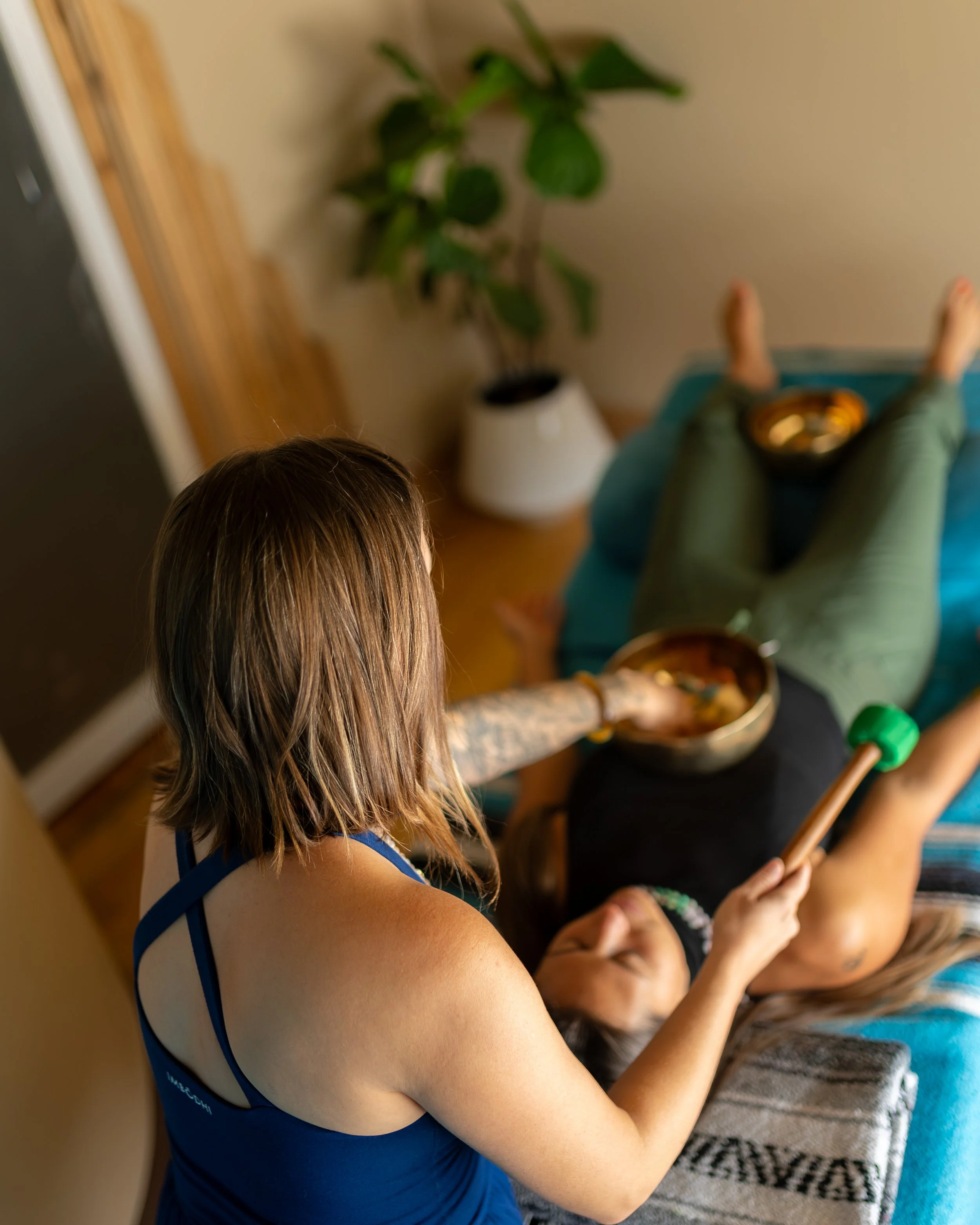 Sound Alchemy is a vibrational healing experience—also known as a sound bath, sound healing, or sound journey—that uses Tibetan singing bowls, chimes, and other instruments to promote deep rest and energetic balance. Like Yoga Nidra, it activates theta brain waves, supporting relaxation, stress relief, and a grounded sense of calm.